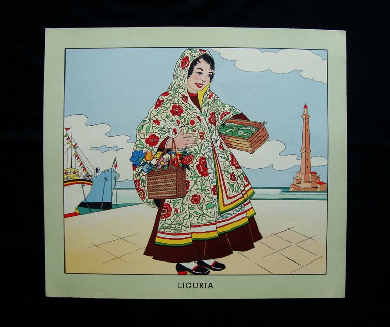 Liguria Stampa Costume Regionale Tradizionale De Felici Jandolo anni 50