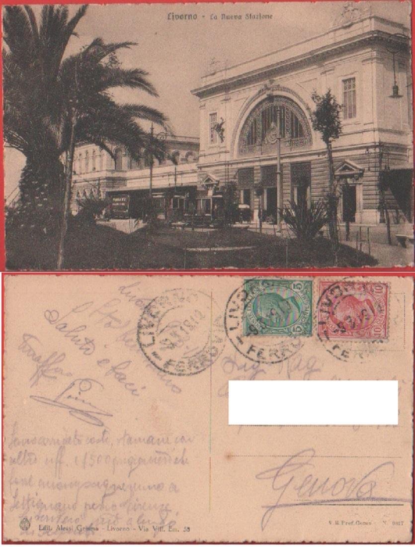 Livorno. La nuova stazione. Viaggiata 1919. Tram