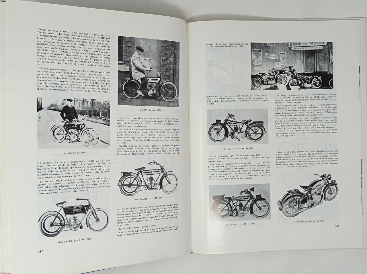 Stampato nell'aprile 1988. In lingua francese. Formato: 25 x 32,5 cm circa. Pagine: 258. Opera ricchissima di immagini fotografiche in nero (con qualche eccezione a colori) nel testo. con 4 pagine a colori (tavole pubblicitarie) fuori testo. Ottimo esemplare (leggere grinze di natura editoriale sul rivestimento lucido del piatto anteriore). Copertina editoriale cartonata rigida. L'opera ripercorre la storia dell'industria automobilistica belga, proponendo i vari modelli di automobili e di motociclette prodotte. Ampio spazio è dedicato anche alle auto da corsa, ai rally e ai Grands Prix. Numerosi i modelli di auto e moto d'epoca presenti ed illustrati in questo volume (tantissime le immagini fotografiche). Tra le varie case automobilistiche troviamo: Linon, Germain, Duryea, Vivinus, De Cosmo, Pipe, Nagant, Pieper, F.N., Dechamps, Belgica, Torpedo locomotrice, Springuel, Excelsior, Hermes, Imperia, F.I.F, Bovy, S.A.V.A., d'Aoust, Catala, Raskin, Soméa, P. M., Juwel, Astra, Demati, . per le motociclette: Sarolea, Gillet , Bovy, C.I.E., C.I.T.A., Lady, Minerva, Mondiale, Mineur, P.A., Ready, Rush, Socovel, Spring, Star-Gem, Sèphynx, . Oltre alle automobili e alle motociclette sono presenti anche modelli di camion. Volume assai ricercato, di non più facile reperimento.