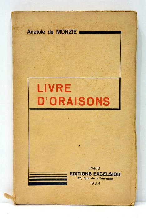 XXXIII. 157 pages. (19x12 Cm). Broché. Couverture imprimée. Petits accrocs. Publié à Paris en 1934, cet ouvrage d'Anatole de Monzie se distingue par son exploration du genre littéraire des oraisons, à une époque marquée par de profonds bouleversements sociaux et politiques. L'auteur, figure politique et intellectuelle de son temps, infuse dans ses textes une réflexion sur les valeurs et les préoccupations de l'entre-deux-guerres. Papier bruni. Sinon, exemplaire en bon état.