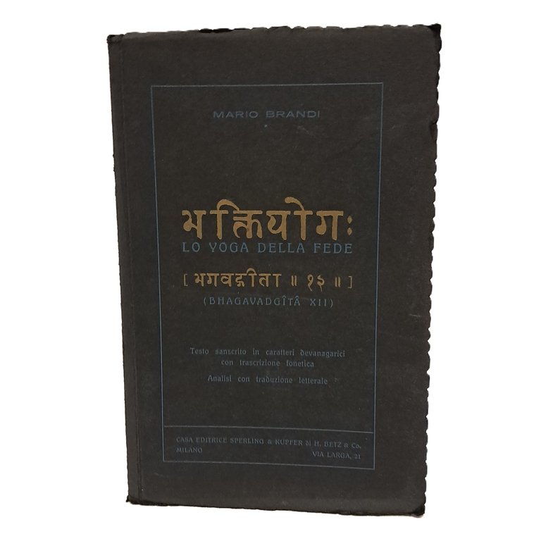 PRIMA EDIZIONE Testo sanscrito in caratteri devanagarici con trascrizione fonetica, analisi con traduzione letterale. La Bhagavadgita è una frale più grandi e più note sacre Scritture del mondo ed è dominata da profondi concetti filosofico-religiosi. In brossura. Pp. 40. Testo raro. Ottime condizioni.