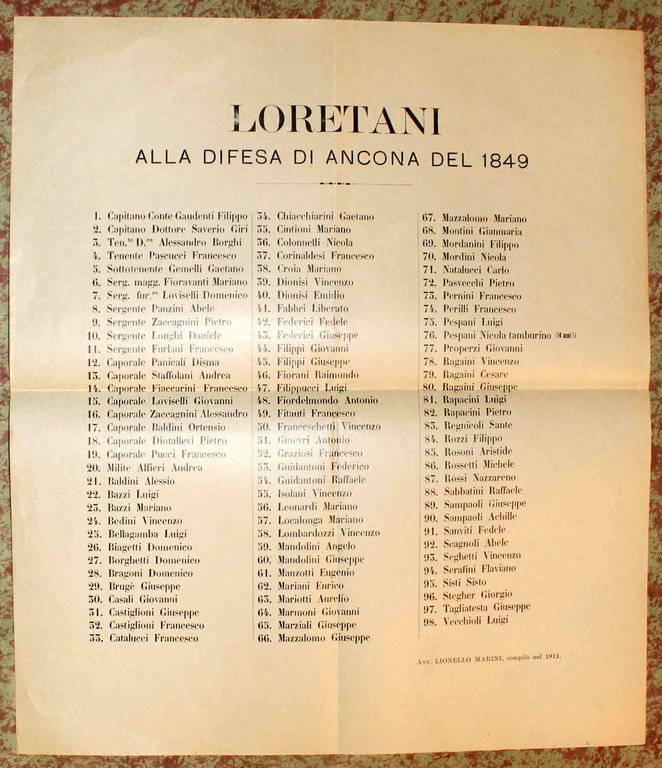 Foglio di cm. 38 X 33 Manifestino con l'elenco dei nomi. Segni di piegatura. Buon esemplare.