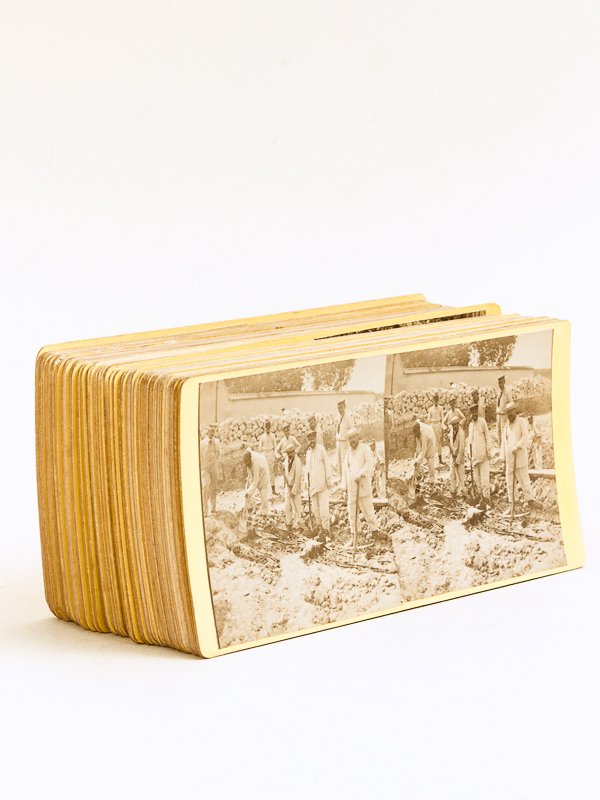 Intéressant lot de vues stéréo, dont de nombreuses vues d'un charnier