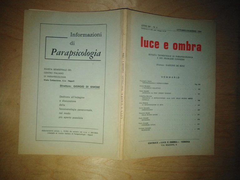 LUCE E OMBRA. trimestrale di parapsicologia e problemi connessi - n. 4 del 1984