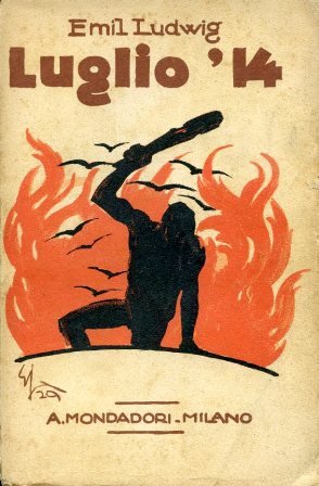 In-8°, pp. 269, brossura editoriale ripiegata illustrata con ritratti fotografici di alcuni dei protagonisti della politica europea alla vigilia della Grande Guerra. 17 tavv. in b.n. f.t. Ex-libris di Italo Mario Sacco (1886-1959), giurista, storico, senatore, Presidente dell'Istituto Nazionale di Organizzazione del Lavoro. Bell'esemplare. Prima rdizione italiana di questo volume sul defalgrare della Prima Guerra Mondiale composto da Emil Ludwig, volgarizzatore storico i cui volumi conobbero tirature altissime nei primi decenni del Novecento in Germania come nel resto d'Europa. Manca il nome del traduttore. Il Ludwig (Breslavia, 1881-1948) ebbe larga notorietà in Italia soprattutto per i suoi 'Colloqui con Mussolini' e fu autore di divulgatissime biografie di Lincoln, Goethe, Schliemann, Guglielmo II, Bismarck e persino di Gesù Cristo, contrassegnate tutte da un superficiale gusto anedottico non scevro, tuttavia, di una certa piacevolezza letteraria.