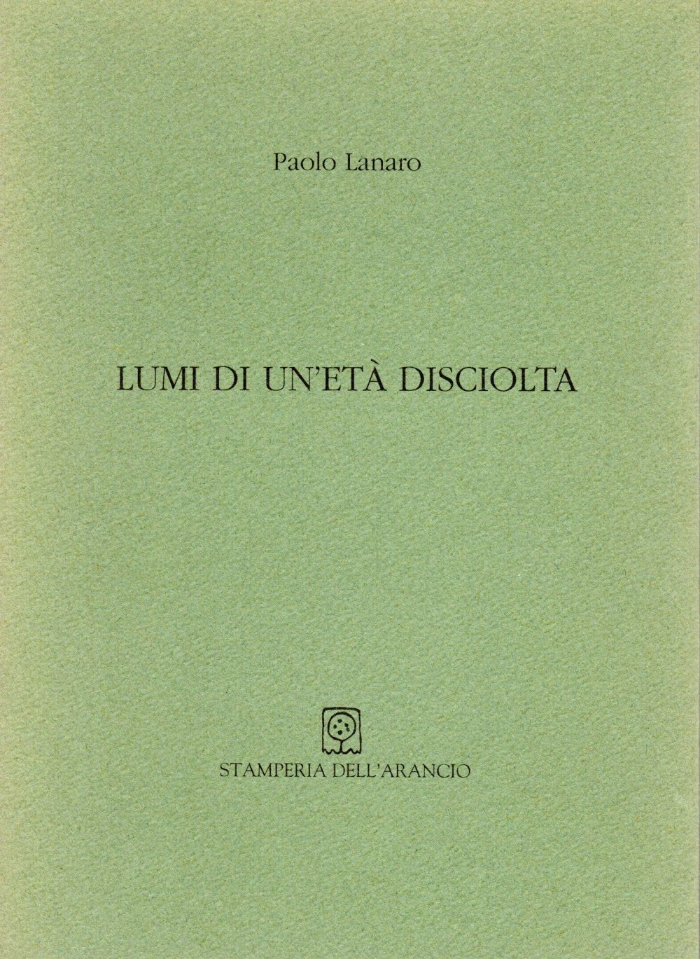 Lumi di un'età disciolta, prima edizione novembre 1993, pp. 33, formato 12 x 16,5.<BR>Copertina morbida di colore verde con titoli in nero al piatto anteriore. Introduzione di Massimo Raffaeli.All'interno presente un incisione di Alberto Rocco. <BR>Ottime condizioni.