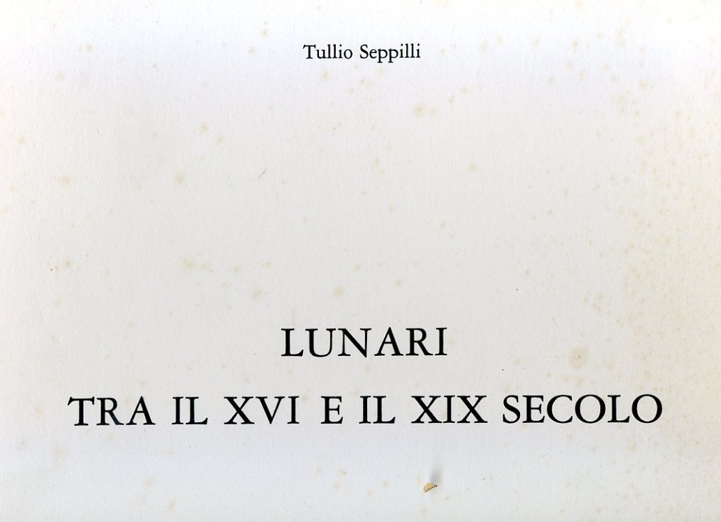 In-folio (450x330mm), un centinaio di pp. sciolte e senza paginazione conservate entro una scatola editoriale in cartone a stampa. 13 tavole a colori 'più quattro quartini, stampati su carta Rosaspina della Fabriano fabbricata appositamente per le Edizioni Gian Alvise Salamon'. Perfetto stato. Tiratura di sole 500 copie. Riproduzione (mantenendone le dimensioni e gli altri caratteri tipografici) di tredici lunari in-folio stampati in Umbria tra il 1565 e il 1822, uno impresso a Spoleto ed i restanti a Foligno, facenti parte della Collezione Faloci Pulignani della Biblioteca Comunale. Testo italiano ed inglese.