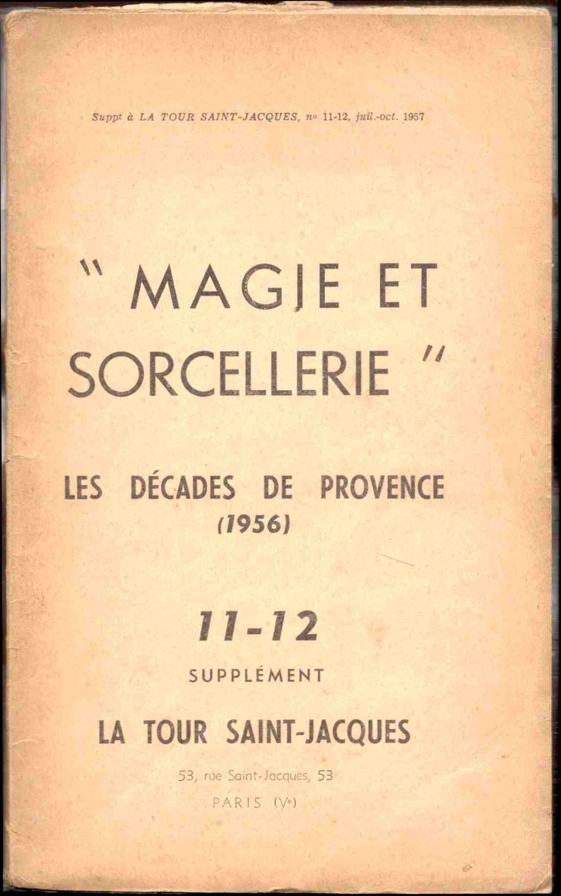 Magie et sorcellerie. Les décades de Provence (1956). Supp. à La Tour Saint-Jacques n. 11-12