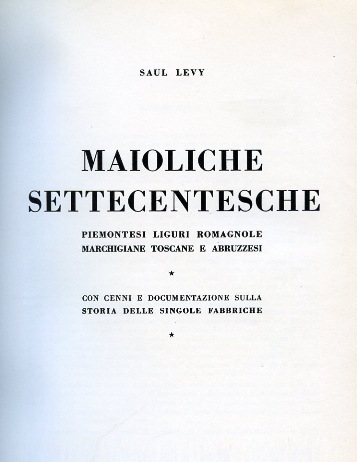 Maioliche settecentesche piemontesi liguri romagnole marchigiane toscane e abruzzesi. Con cenni e documentazione sulla storia delle singole fabbriche