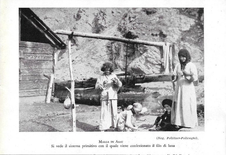Malga in Asau. Confezione del filo di lana. Stampa 1930