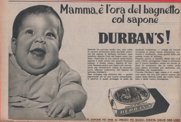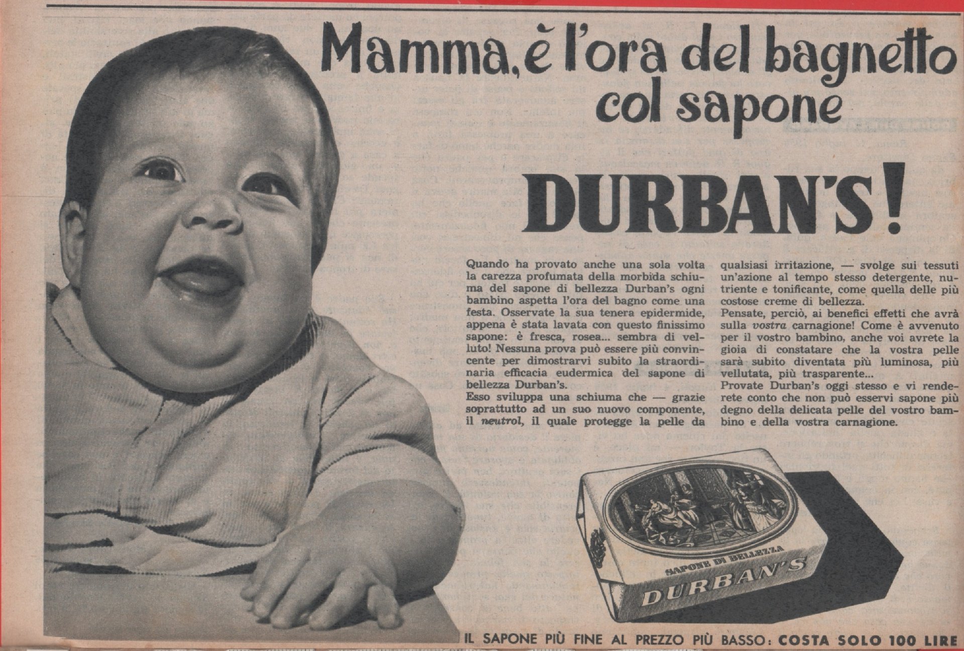 Mamma, è l'ora del bagnetto col sapone Durban's. Advertising 1956