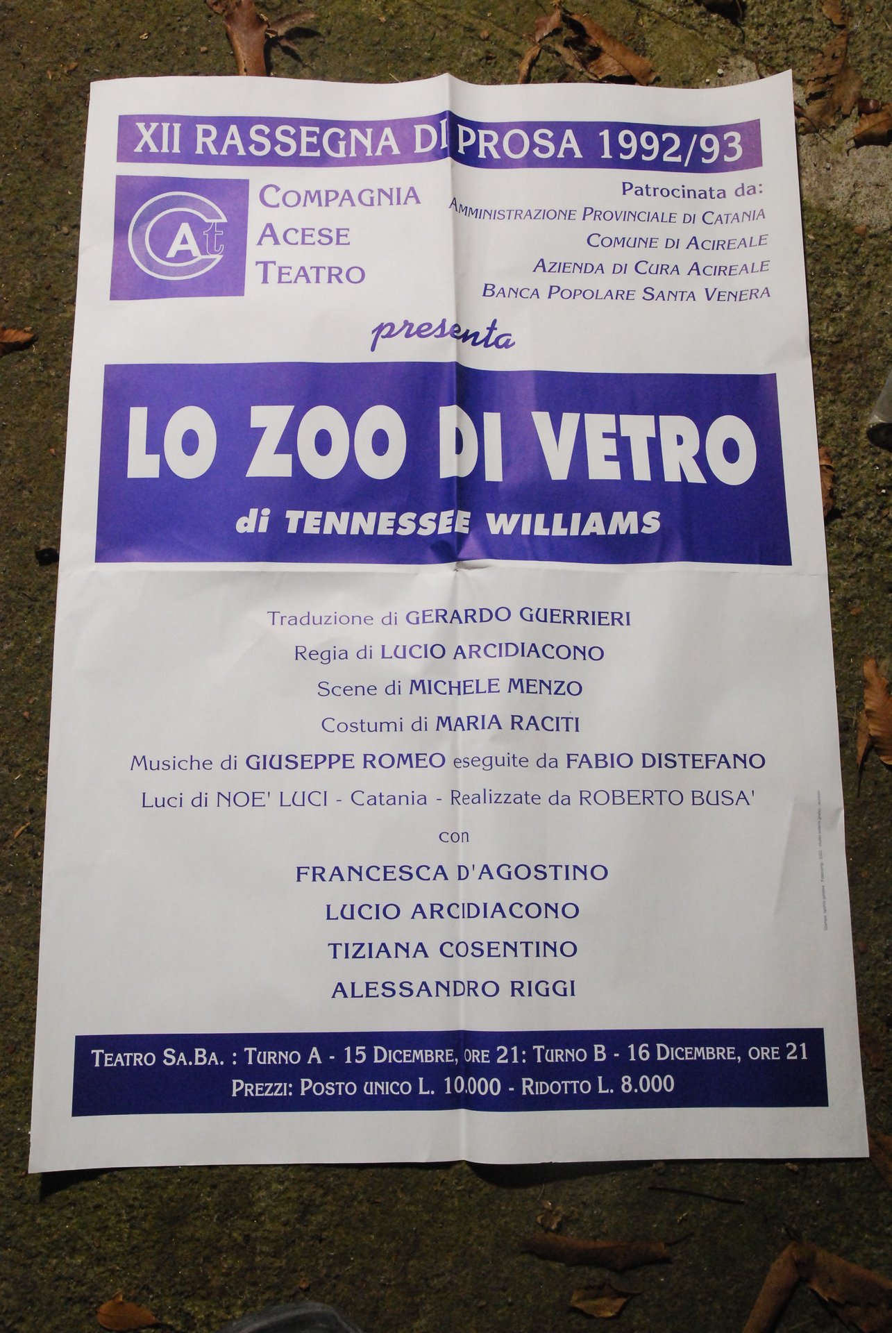compagnia acese teatro acireale manifesto lo zoo di vetro. .