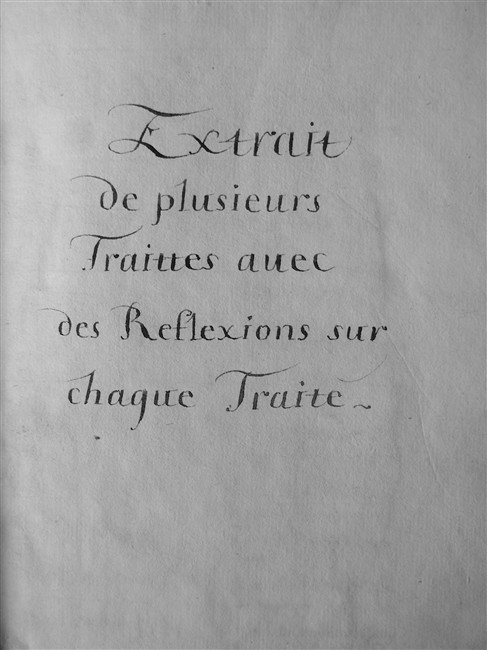 MANOSCRITTO di anonimo autore recante il titolo “Extraits de plusieurs Traittes avec des reflexions sur chaque traité”.