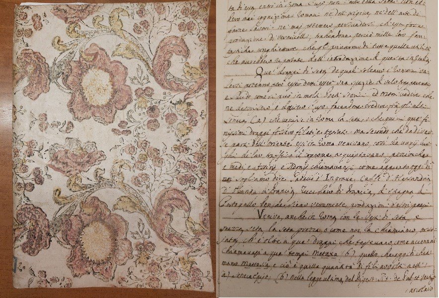 manoscritto cartaceo in folio (mm. 322x225) in chiara grafia settecentesca, ccnn 54 (testo sulle due facciate) e 6 cb al fine, bella leg. settecentesca in graziosa carta dec. coeva. Opera di anonimo autore, suddivisa in 7 capitoli: vi sono contenute notizie sulla seta prodotta a Coo, isola dell’arcipelago dell’Asia, e chiamata “Stanio”, e sugli antichi autori che trattano della seta (Plinio, Ulpiano, etc.). Opposizione dell’A. alle tesi di G. C. Scaligero sull’uso della seta presso gli antichi abitatori della Calabria. Notizie sulla produzione di seta in Piemonte. Tesi del Dottor Godart inglese e altre dissertazioni dello Scaligero sull’alimentazione dei “vermicelli” con foglie del sicomoro. Citate le esperienze del Redi. L’anonimo autore sembra essere di area friulana poichè a c.10 recto afferma: “io medesimo nella mia casa di Udine”. Ex libris nobiliare. Splendido esempl. [226]
