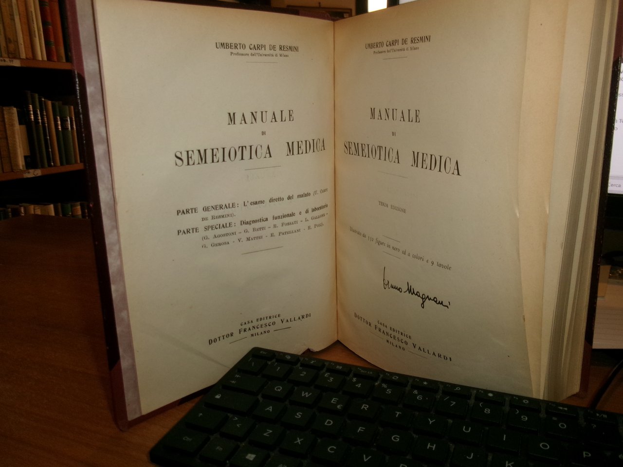 Umberto Carpi De Resmini. Milano, Casa Editrice Vallardi,1946. Manuale di SEMEIOTICA MEDICA. In-8°, m-tela con punte. xvi, 769 pp. illustrato da 332 figure in nero ed a colori e 9 tavole. Ben conservato. Uff. C - IV - 7