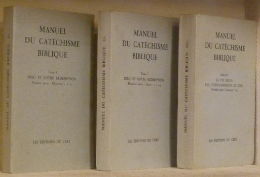 Manuel du cathéchisme biblique. Tome I/1 et I/2 : Dieu et notre rédemption. Première partie : questions 1 à 21. Deuxième partie : Leçons 22 à 44. Tome III : La vie selon les commandements de Dieu. Première partie : Leçons 91 à 113. 3 volumes.