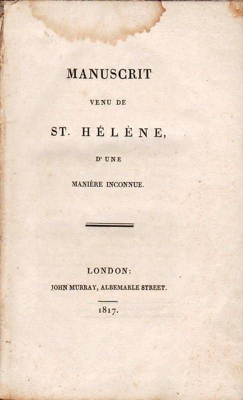 Manuscrit venu de St. Hélène d'une manière inconnue.