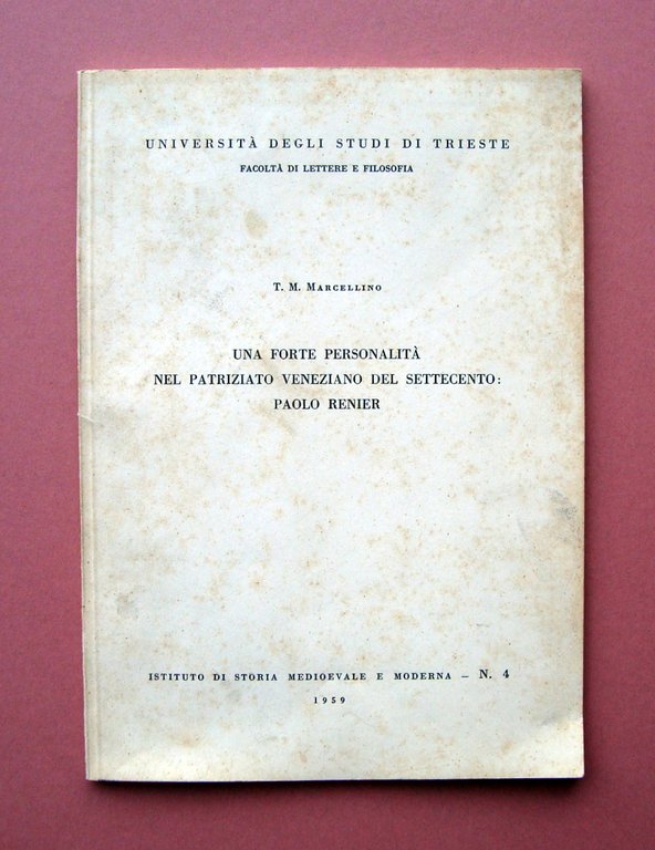 Marcellino Paolo Renier una forte personalità Patriziato Veneziano del 700 1959