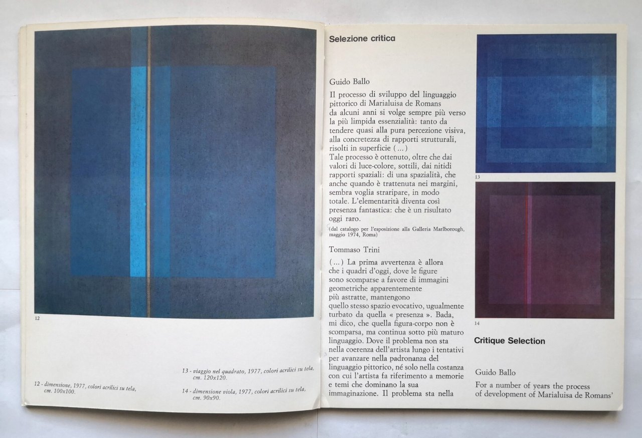 MARIALUISA DE ROMANS. VIAGGIO NEL QUADRATO 1976-78 di Gillo Dorfles.