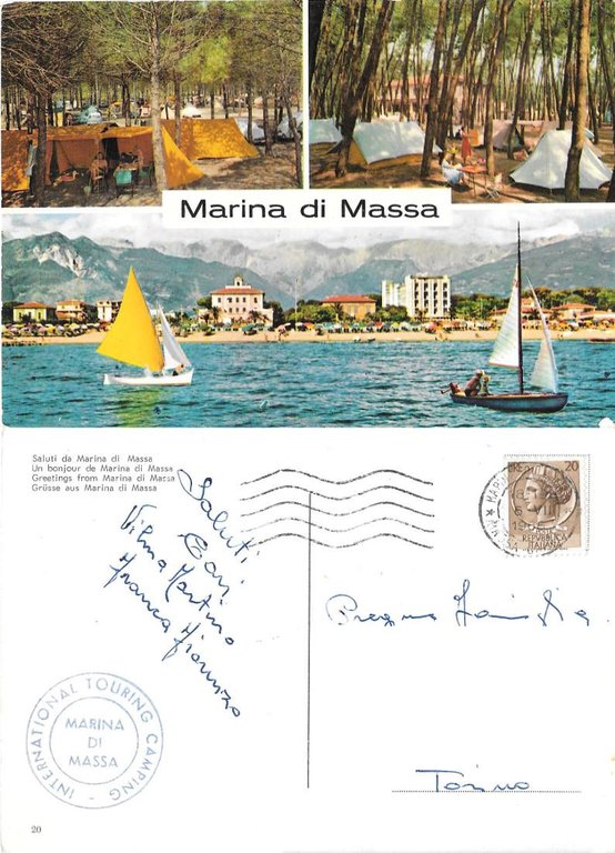 Marina di Massa. Vedutine. Viaggiata 1966. International Touring Camping