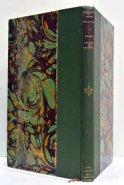188 pages. Demi-toile postérieure à la Bradel. Couverture imprimée conservée. Coins et coiffes émoussés. Plats un peu frottés. Cette œuvre dramatique de Casimir Delavigne, présentée en 1829 à Paris, marque un tournant dans la carrière de l'auteur et dans l'évolution du théâtre romantique français. En choisissant le théâtre de la Porte Saint-Martin, Delavigne s'éloigne des conventions de la Comédie Française, explorant ainsi de nouvelles voies théâtrales. La pièce, accueillie avec enthousiasme, bénéficie d'une mise en scène innovante et des talents de Marie Dorval et Ligier, contribuant à son succès. L'exemplaire en question, conservé dans son état original, témoigne de cette période charnière, offrant un aperçu précieux sur le théâtre de l'époque et son évolution.