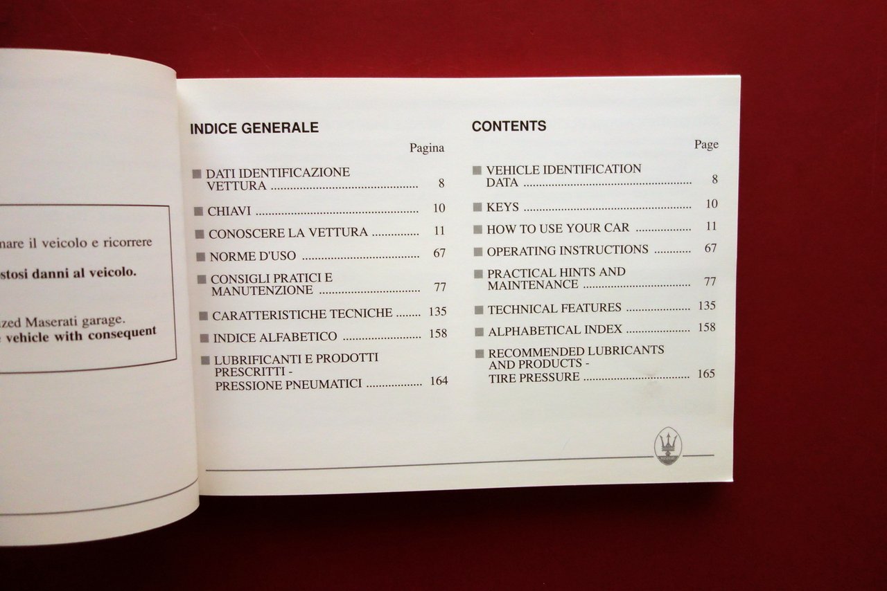 Maserati Shamal Libretto Uso e Manutenzione Edizione Italiano Inglese 1991