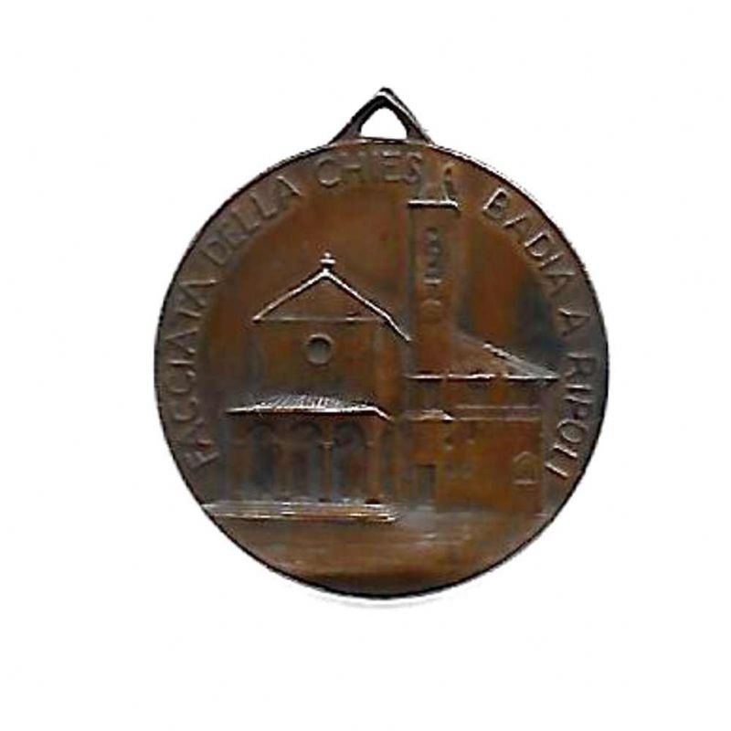 Medaglia in rame, al recto la facciata della chiesa con titolo, al verso il martirio di San Bartolomeo Patrono.