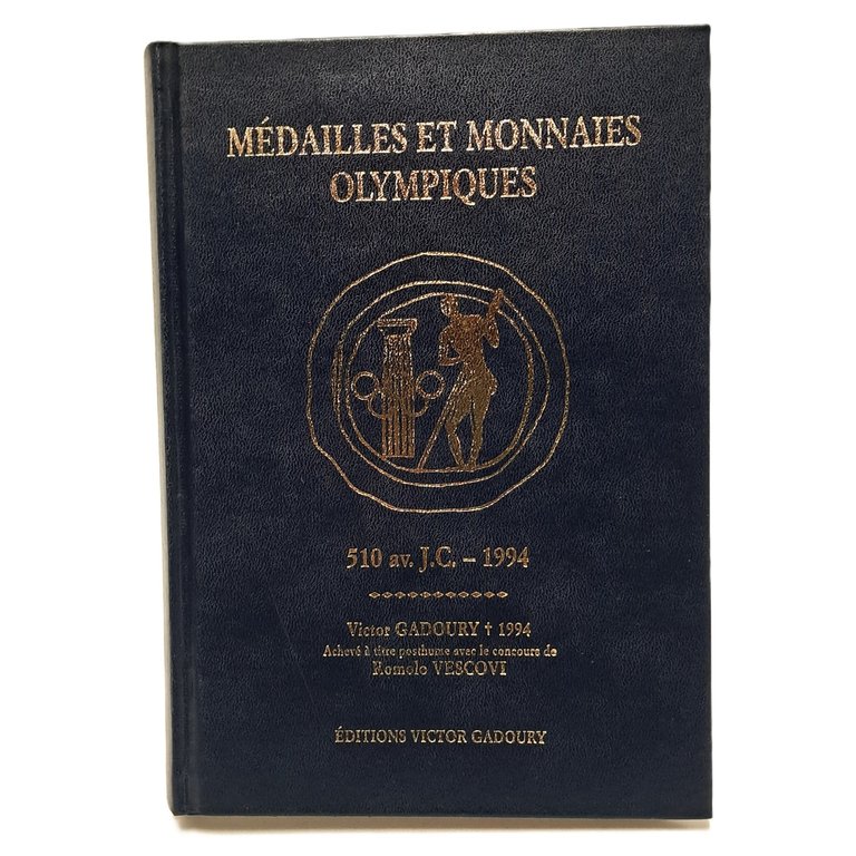 PRIMA EDIZIONE opera in lingua francese, concluso postumo da Romolo Vescovi Repertorio di medaglie, monete e emblemi coniati per i giochi olimpici, le sessioni, il centenario delle olimpiadi. Dall'indice dei capitoli: Storia dei giochi olimpici nell'antichità, I giochi olimpici estivi, I giochi olimpici invernali, Medaglie e emblemi dalle sessioni del CIO, Medaglie del centenario dell'olimpismo Cartonato. Pp. 555. Ottime condizioni.