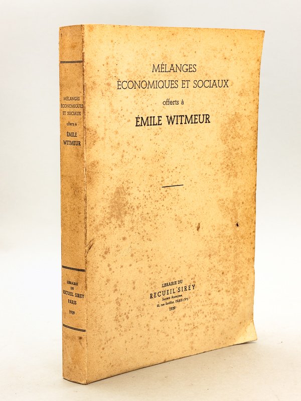 Mélanges Economiques et Sociaux offerts à Emile Witmeur [ Edition originale ] [Contient notamment : ] L'expression des émotions et la société, par Maurice Halbwachs ; La politique du gouvernement au point de vue de la constitution des réserves de matières premières et de denrées alimentaires, par J. M. Keynes ; Pour un approfondissement de la notion de structure, par François Perroux ; La réforme de l'Etat, par Jacques Pirenne ; Les divisions de l'économie politique, par Gaëtan Pirou ; Les fondements de la sociologie relationnelle, par Léopold von Wiese | Libri antichi e moderni | Collectif, Keynes, John Maynard, Perroux, François, Pirenne, Jacques, Von Wiese, Leopold