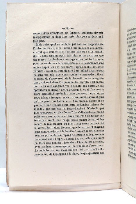 121 pages. 1 feuillet. (22,5x14,5 Cm). Broché. Couverture imprimée. Petits accrocs au dos. Etude du philosophe français Jean Philibert Damiron, l’un des plus honorables représentants du spritualisme au XIXème. siècl. Ce qui lui donne un rang à part, quoique un peu secondaire, dans l’école de M. Cousin, c’est qu’il en est le moraliste et le prédicateur. Exemplaire en bon état.