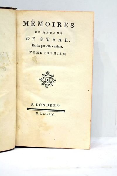 Tome premier seul. 321 pages. (17x10,5cm). Pleine basane du temps. Dos à nerfs finement orné et titré en lettres dorés. Tranches rouges. Filet doré sur les coupes. Quelques frottements et manques de cuir sans gravité sur la reliure. Dos un peu usagé. Coiffes élimées. Charnières un peu fendues. Traces de mouillure sans gravité et quelques rousseurs à l'intérieur. Bon état Elégante réliure du temps qui mérite une restauration.
