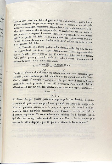 47 pages. 3 planches hors-texte. (26x20 Cm). Broché. Couverture muette postérieure. Edition rare de ce mémoire des pères jésuites de l'observatoire du Collège romain (aujourd'hui observatoire du Vatican). Cette publication dirigée par le célèbre astronome Francesco de Vico, qui a donné son nom à l'un des cratères de la Lune, contient des articles sur les révolutions de la planète Vénus, l'excentricité de Saturne et l'observation de la nébuleuse de la Grande Ourse. Belles planches lithographiées représentant la "Nebulosa stellare in Ercole", "Due nebulose dell'Orsa Maggiore", et "Il corno australe de Marzo". Exemplaire portant la signature manuscrite de Frédéric Petit, premier directeur de l'observatoire de Jolimont à Toulouse. Exemplaire en très bon état.