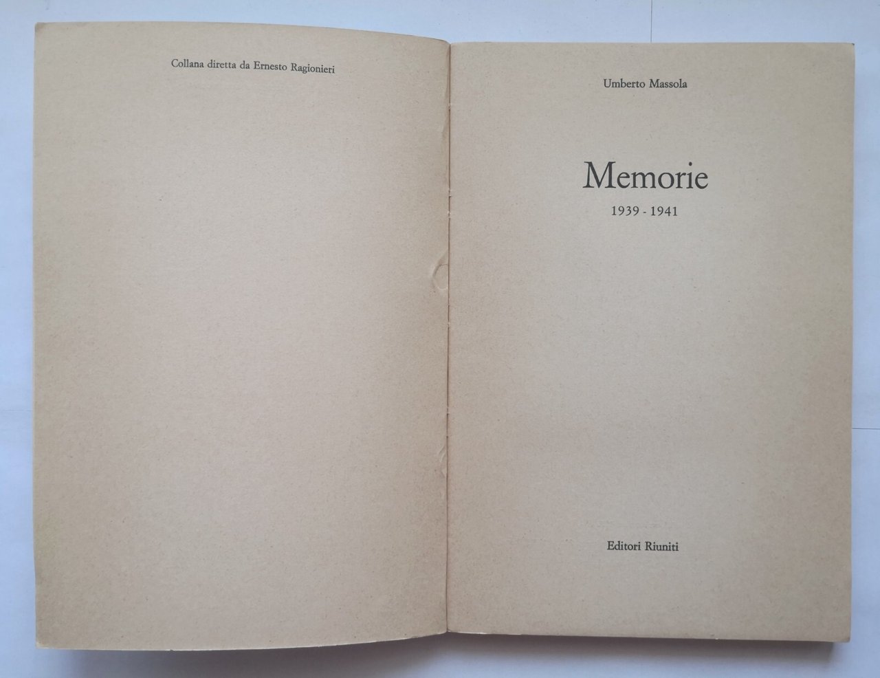 MEMORIE 1939 1941 di Umberto Massola 1972 Editori Riuniti Libro