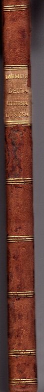In-4° antico (260x200mm), pp. (6), 172, legatura ottocentesca in mezza pelle marrone con titolo e filetti dorati al dorso. Tagli a spruzzo. Vignetta xilografica a soggetto religioso al titolo. Numerose iscrizioni latine n.t. Ottimo esemplare. Prima edizione, rara, di questa storia ecclesiastica di Susa, in cui le vicende della sua diocesi attraverso i secoli sono costantemente raccordate ai più generali rivolgimenti politici. Il Sacchetti era canonico penitenziere della Cattedrale di Susa e rettore del Seminario della stessa città. Platneriana, p. 377. Lozzi, II, 5263 (in nota). Non in Manno.