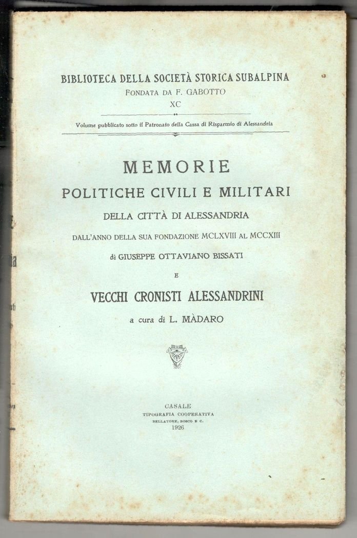 Memorie politiche civili e militari della città di Alessandria. Vecchi cronisti alessandrini a cura di L. Madaro