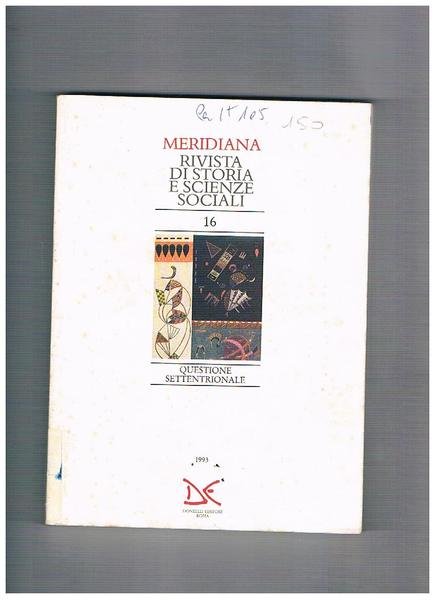 Meridiana, rivista quadrimestrale dell'istituto di storia meridionale e scienze sociali. N° 16 genn. 1993, Questione settentrionale: le élites settentrionali e la storia italiana; famiglia, parrocchia, secolarizzazione: l'area cattolica; Torino oh cara. Dove va la città della Fiat; ecc.