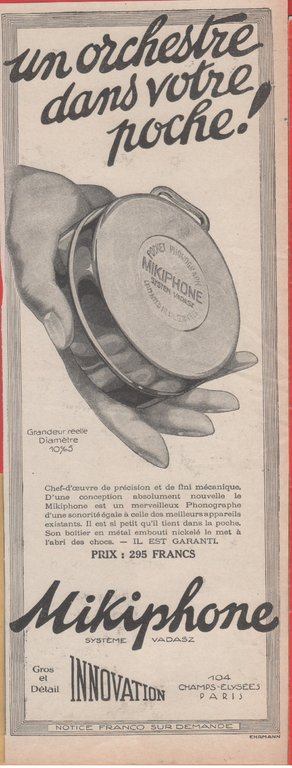 Mikiphone un orchestre dans votre poche!. Advertising 1926