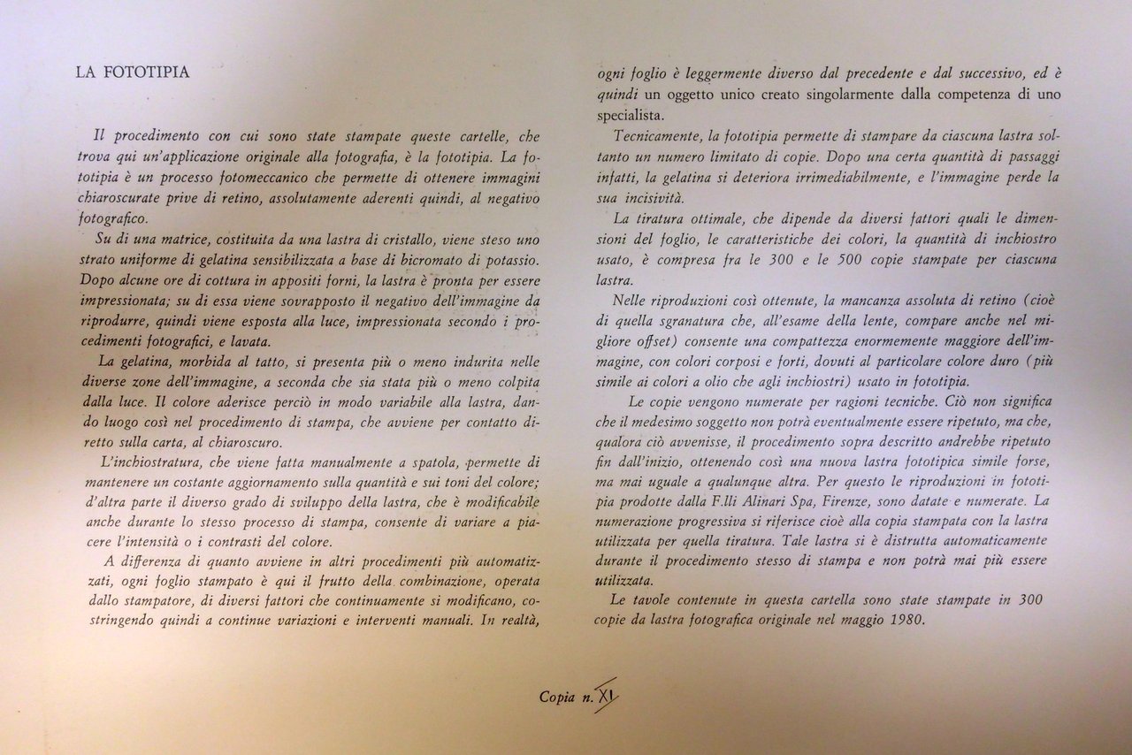 Fratelli Alinari Istituto di Edizioni Artistiche (omaggio Banco Lariano), 1980; cartella costituita da foglio di presentazione 3 da 6 belle fototipie in b/n applicate su carta, con didascalie descrittive al margine inferiore del supporto. Le fototipie e il foglio sono contenuti entro cartella ed. in cartonato, con titolo al piatto ant. Dimensioni: cm 61,5x50 (cartella); cm 58,5x48,5 (fototipie).