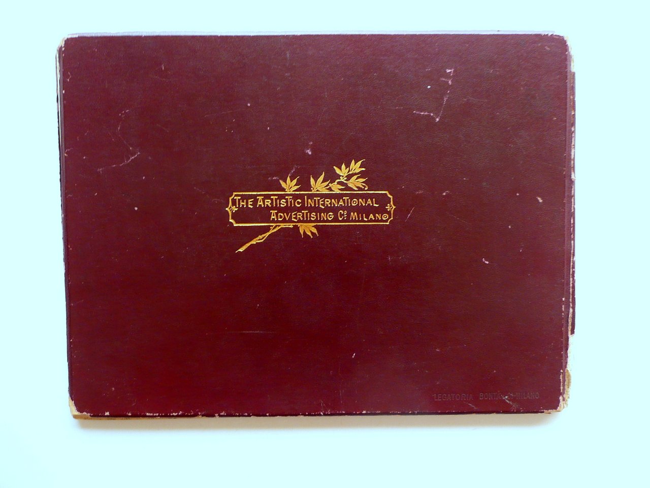 Album fotografico pubblicitario, † Milano Elegante 50 soggetti artistici dal vero - Omaggio della Premiata Fabbrica di Carrozze Francesco Belloni - Milano 1898 The Artistic International Advertising & C., Milano 1898; cm 20x27; pp. non num. (pp. 56), con 50 belle ill. fotografiche d'epoca in b/n, seppiate o virate a vari colori, tutte raffiguranti prodotti e beni di aziende milanesi o con filiale milanese, con didascalia descrittiva al margine inferiore di ciascuna fotografia (vedi foto). Legatura in piena pelle ed. con titolo impresso in oro al dorso.†† Condizioni di conservazione Esemplare complessivamente in buono stato con tracce d'uso, coperta con alcune piccole / circoscritte mancanze e abrasioni ai margini, agli angoli dei piatti e alle cuffie; dorso con strappetti, parzialmente restaurato mediante incollatura; esemplare compatto. Interni buoni con alcuni piccoli lievi / leggeri aloni ai margini e ai risguardi; cerniera interna posteriore fessurata, esemplare compatto. † Album pubblicitario d'epoca, costituito da 50 belle illustrazioni fotografiche seppiate o virate a vari colori nel testo di prodotti e beni di aziende e ditte o meneghine, o aventi filiale a Milano. Molto interessante sia per le forme pubblicitarie che per gli usi e costumi fin de siecle". † SETT189.L17355 N "