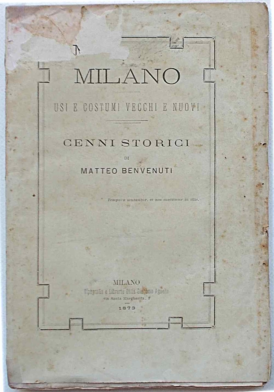 Milano. Usi e costumi vecchi e nuovi. Cenni storici.