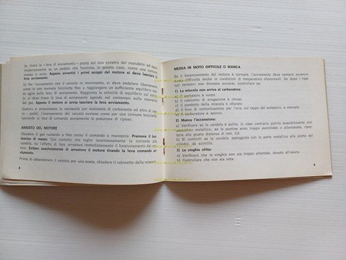 Minarelli motore 50 V2 1977 manuale uso manutenzione originale italiano