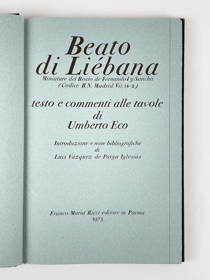 Miniature del beato de Fernando I y Sancha [Beato di Liébana] (codice B.N. Madrid Vit. 14-2). Testo e commenti alle tavole ci Umberto Eco. Introduzione e note bibligorafiche di Luis Vásquez de Parga Iglesias