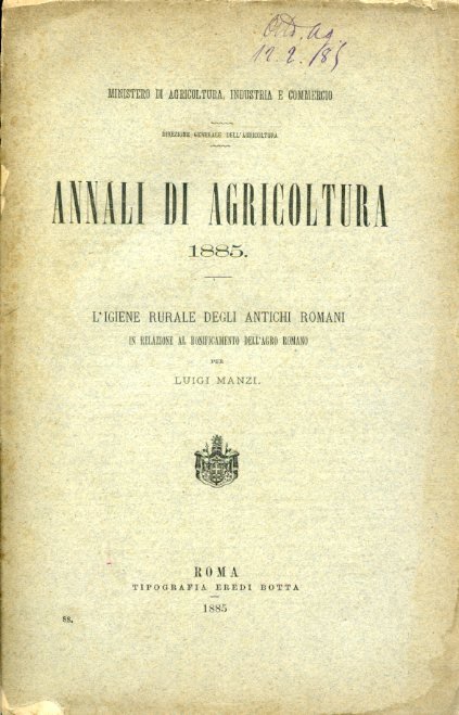 Ministero di Agricoltura, Industria e Commercio. Direzione generale dell'Agricoltura. Annali di Agricoltura 1885. L'igiene rurale degli antichi romani in relazione al bonificamento dell'Agro Romano