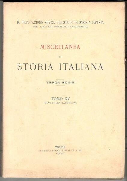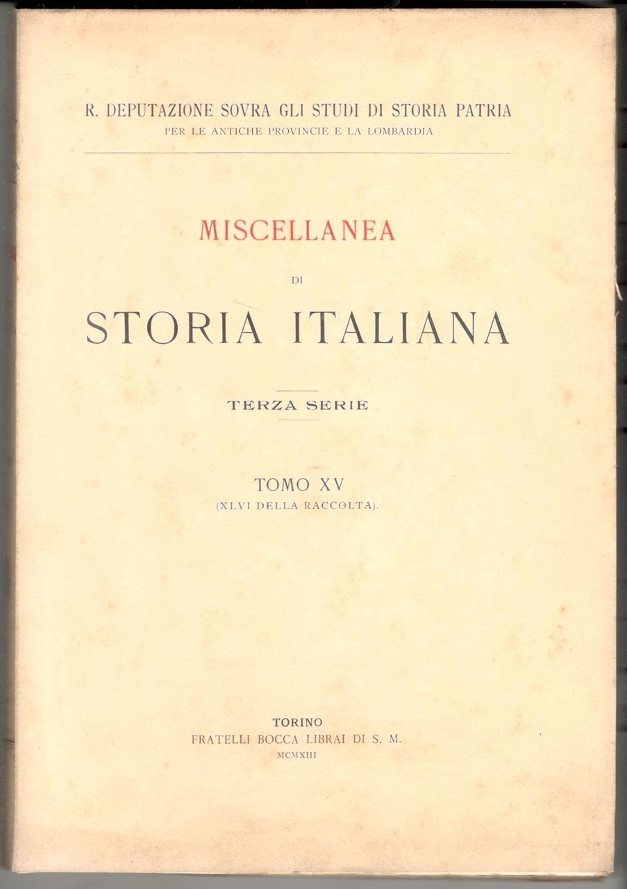 Miscellanea di storia italiana. Terza serie. Tomo XV (XLVI della raccolta)