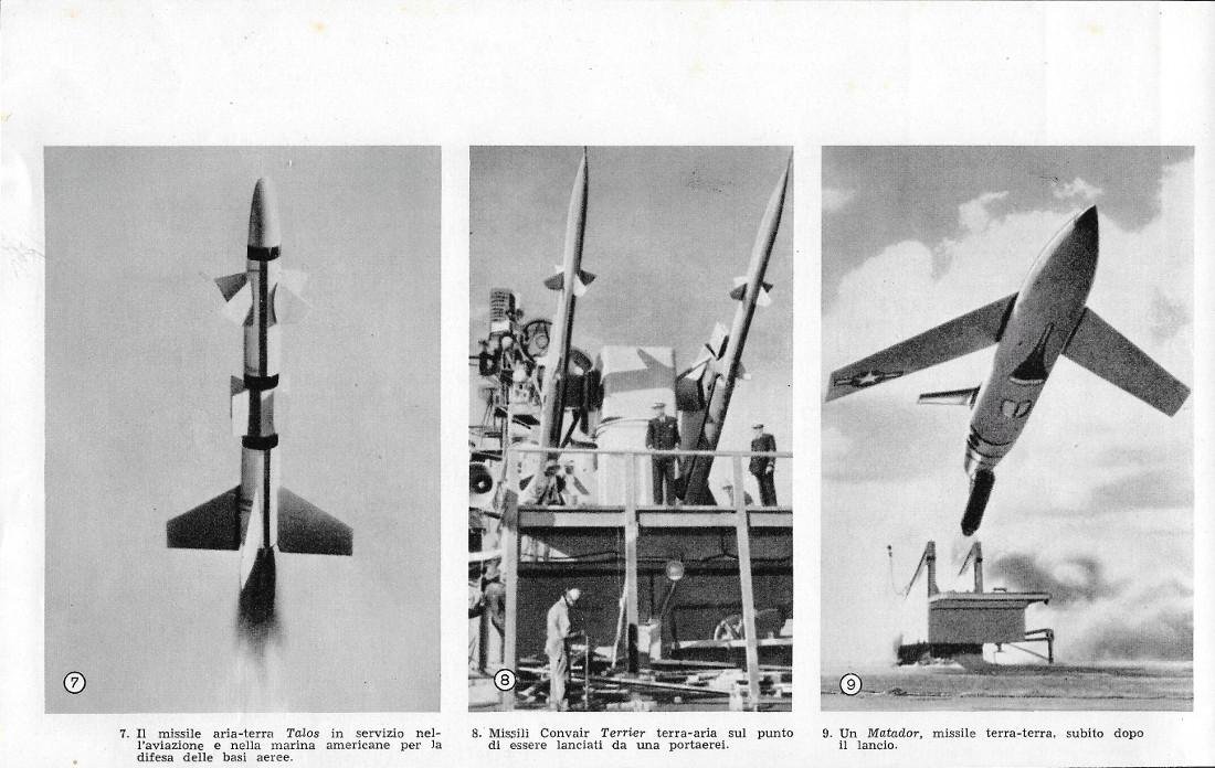 Missile aria-terra Talos/ Missili Convair Terrier terra-aria/ Matador terra-terra. Stampa 1959