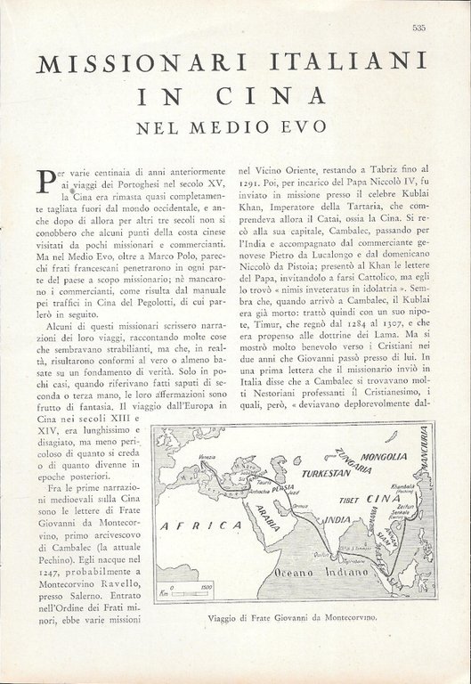 Missionari italiani in Cina nel Medioevo - Estratto 1943