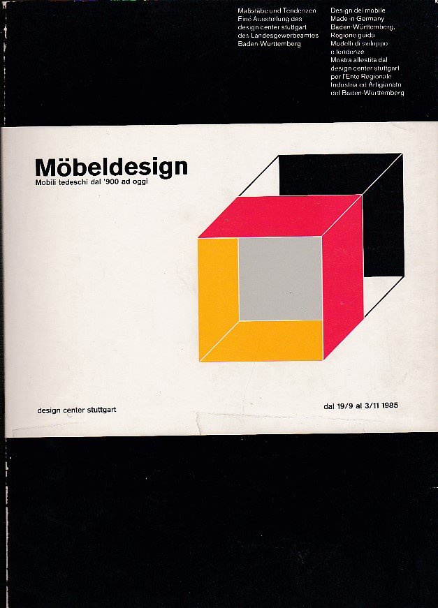 In-8°, pp. 201, (3), cartoncino editoriale con illustrazione geometrica a più colori con apertura a finestra. Fascetta editoriale con illustrazione geometrica. Interamente illustrato con fotografie in b.n. e a colori. Ottimo stato. Catalogo della mostra allestita dal Design Center Stuttgart per il Landesgewerbeamtes Baden-Württemberg nellì'aprile-maggio 1985. Contributi di vari autori.