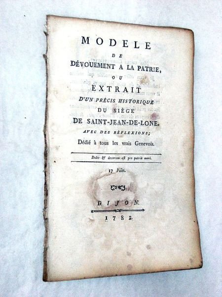 Modèle de dévouement à la patrie, ou extrait d'un précis historique du Siège de Saint-Jean-de-Lone. Avec des réfléxions; dédié à tous les vrais Genevois.