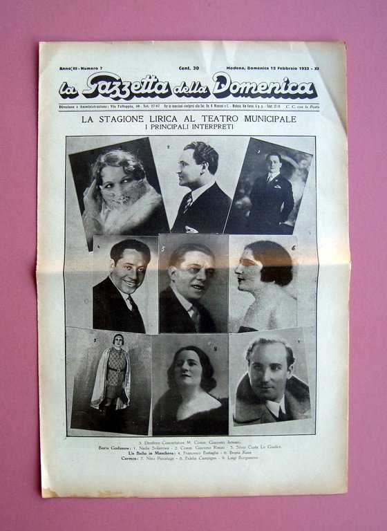 Modena, 1933; cm 45,5x30,5; pp. 8 con varie ill. fotografiche b/n. Numero Completo.