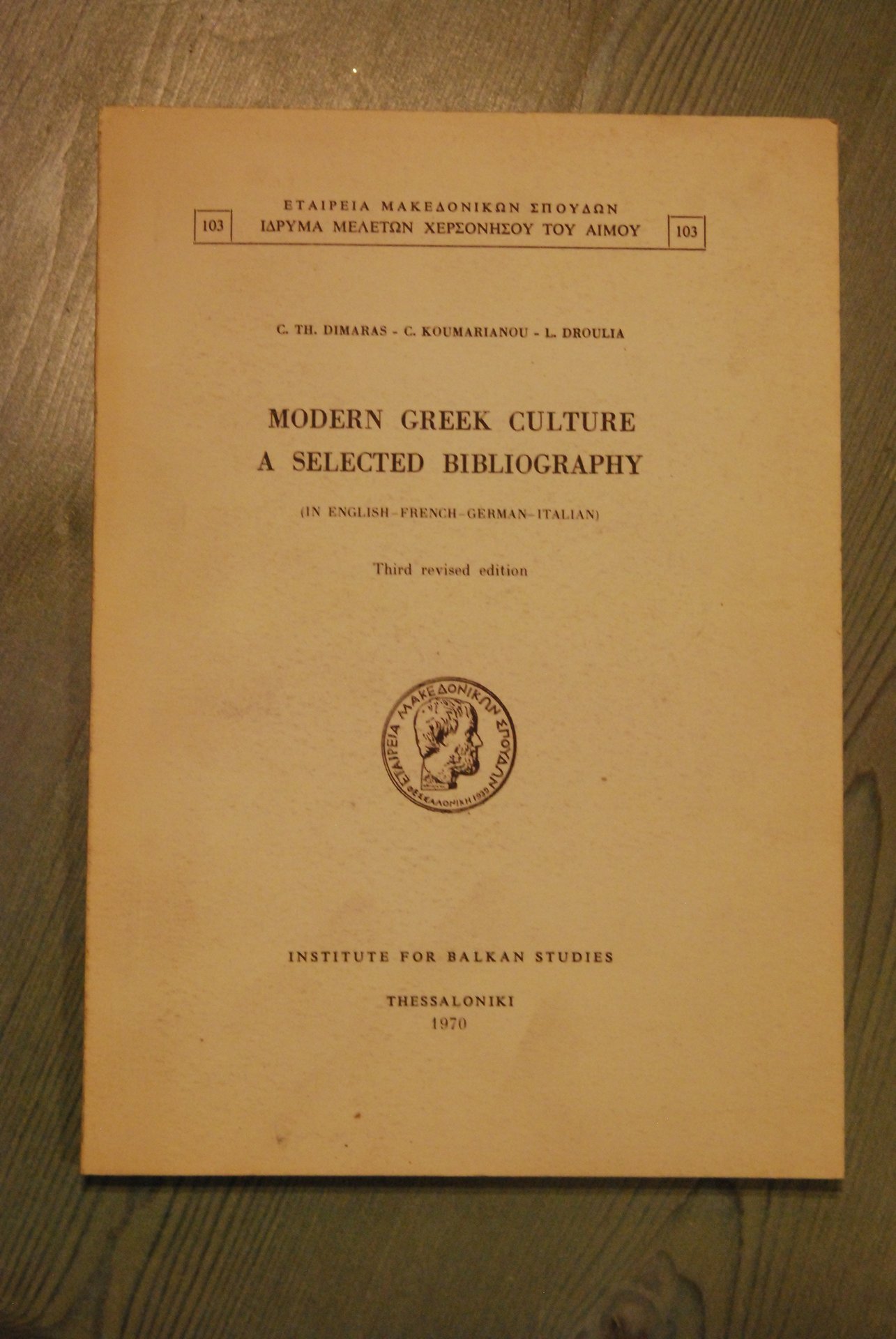 dimaras koumarianou droulia modern greek culture A selected bibliography. 1970 .